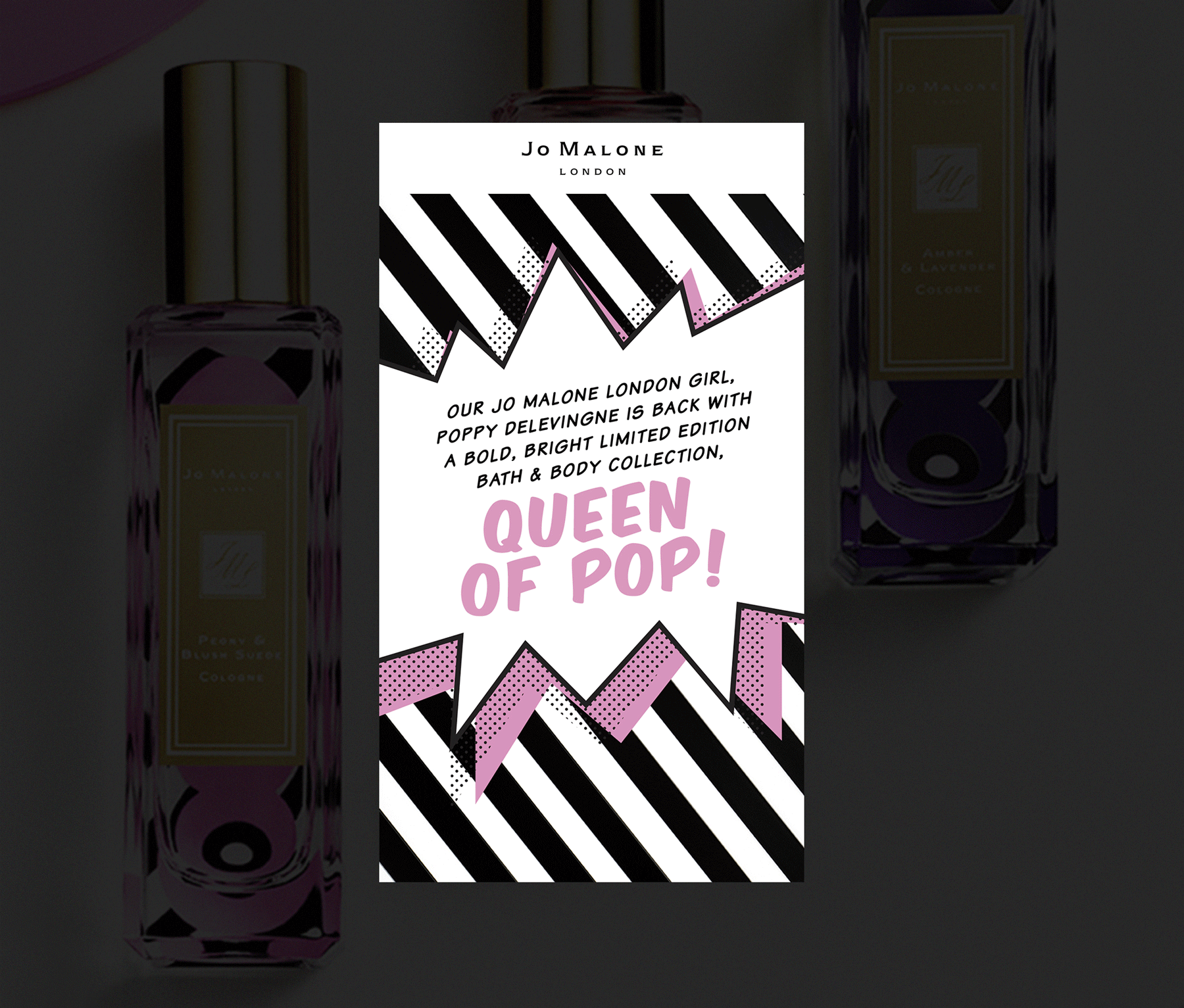 British actress and model Poppy Delevingne’s collaboration with Jo Malone, a bath and body collection, Queen of Pop.